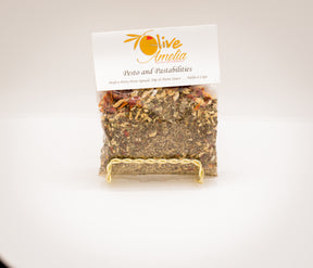 Basil, Onion, Tomato, Red Bell Pepper, Garlic, Black Pepper. No MSG, No Chemicals, No Preservatives, No Salt, Gluten-Free EACH PACKAGE: Yields 6 Cups Pesto & Pastabilities